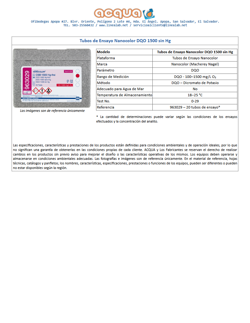 Tubos de Ensayo Nanocolor DQO 1500 SHG. Max. 20 Test.