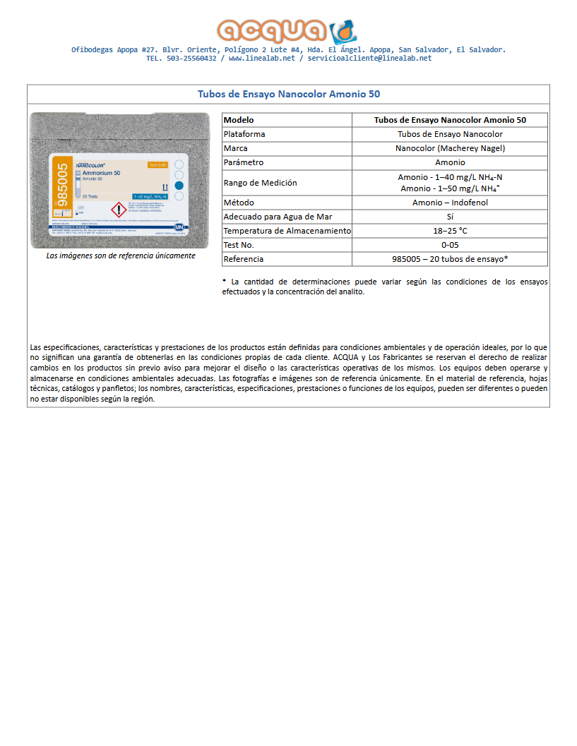 Tubos de Ensayo Nanocolor Amonio 50. Max. 20 Test.