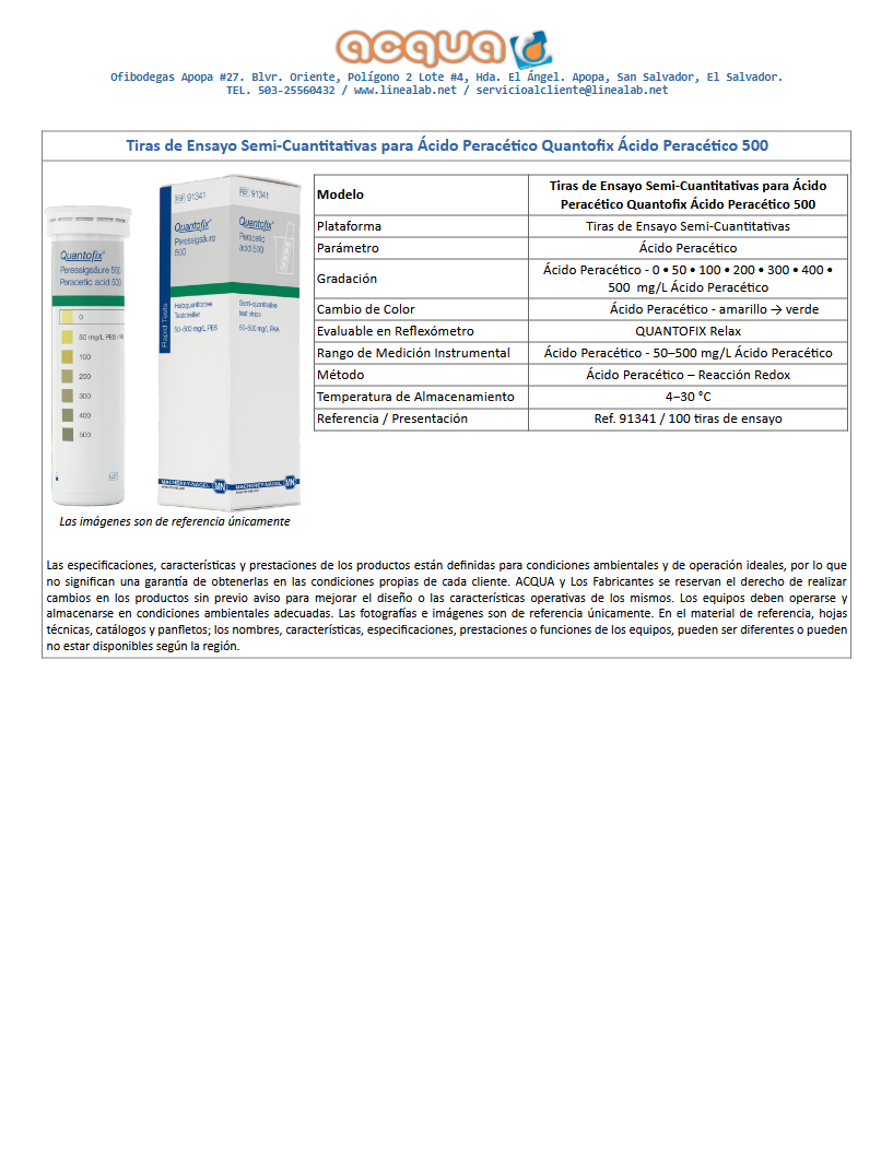 Tiras de Ensayo Semi-Cuantitativas para Ácido Peracético Quantofix Ácido Peracético 500. 100 Tiras.